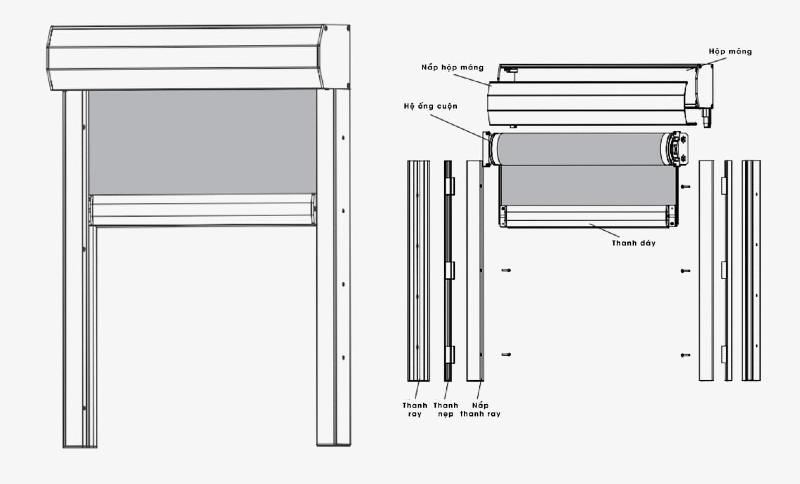 - Cấu tạo: Ray nhôm sơn tĩnh điện, khóa zip hai bên