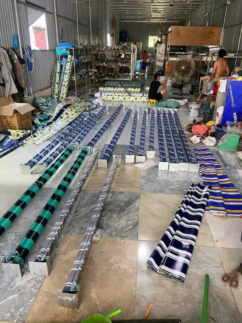 - Vải bạt: được làm từ các loại bạt chống thấm, chống tia UV như bạt Hàn Quốc, bạt Đài Loan, bạt PVC cao cấp.